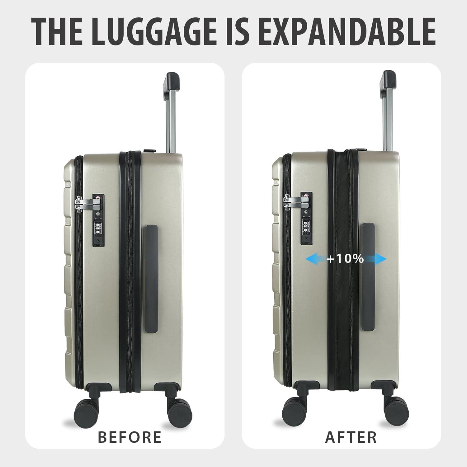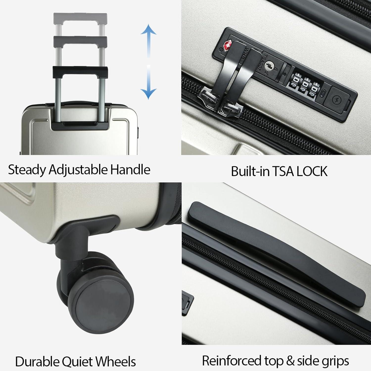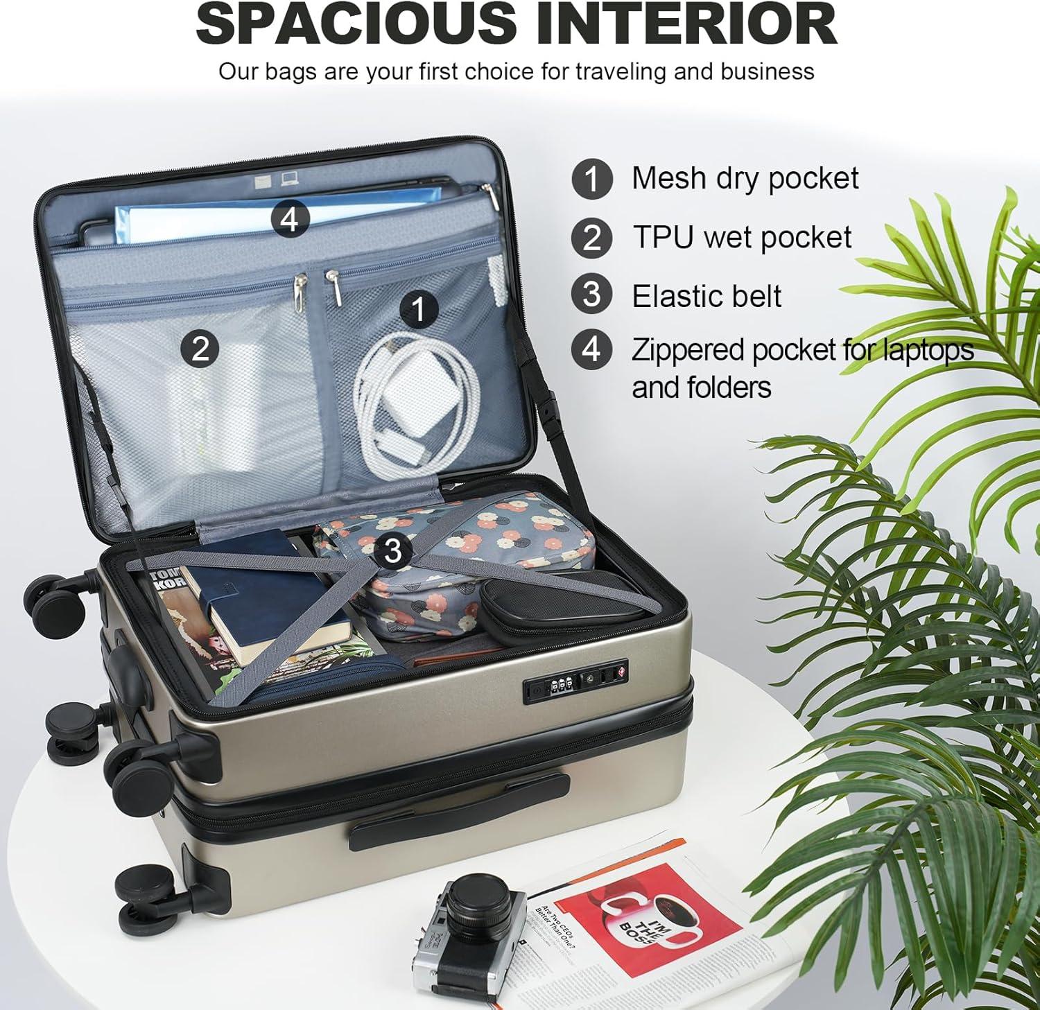 KROSER Carry On Luggage with Spinner Wheels & Built-in TSA Lock, Expandable Top Opening Hard Shell Suitcase Large Capacity Durable Rolling Luggage with USB Port, Carry-On 20-Inch, Champagne(Champagne)