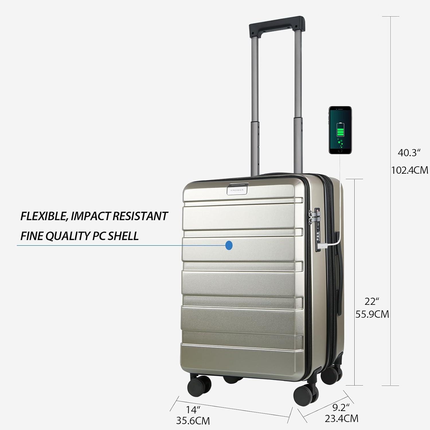 Be the first to review “KROSER Carry On Luggage with Spinner Wheels & Built-in TSA Lock, Expandable Top Opening Hard Shell Suitcase Large Capacity Durable Rolling Luggage with USB Port, Carry-On 20-Inch, Champagne(Champagne)”