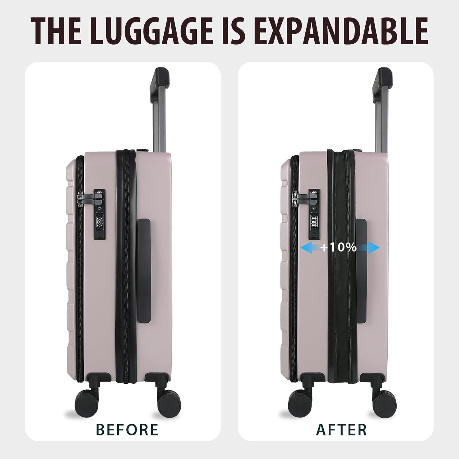 imageKROSER Carry On Luggage with Spinner Wheels amp Builtin TSA Lock Expandable Top Opening Hard Shell Suitcase Large Capacity Durable Rolling Luggage with USB Port CarryOn 20Inch ChampagneMatte PurplePink