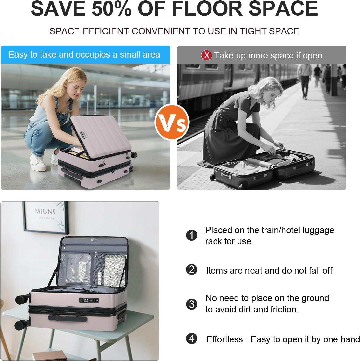 【CREATIVE TOP LOADING】Kroser Top Loading carry on luggage,Leading the future opening and closing method which is effortless to open or close the suitcase, not only is it easy to load, but it also saves space. This design solves the problem that traditional luggage separated 2 compartments of heavy load then it's difficult to open and close. Importantly, it also avoid the displacement of items.