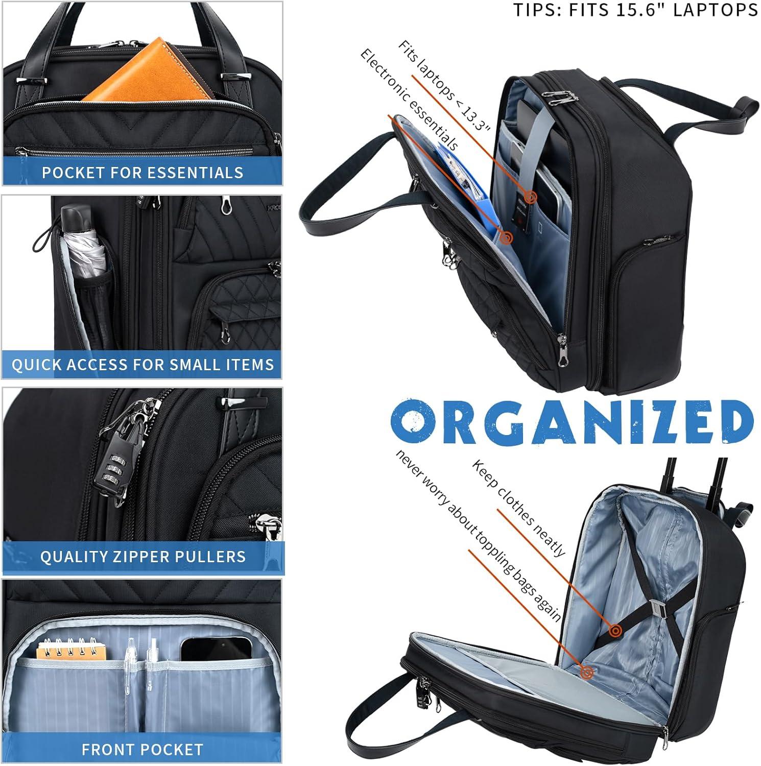 HASSLE-FREE TRAVEL: Top with sturdy carry handle for easy lifting. Back with a smart Sleeve allows the bag to be placed over the handle of most upright luggage pieces.