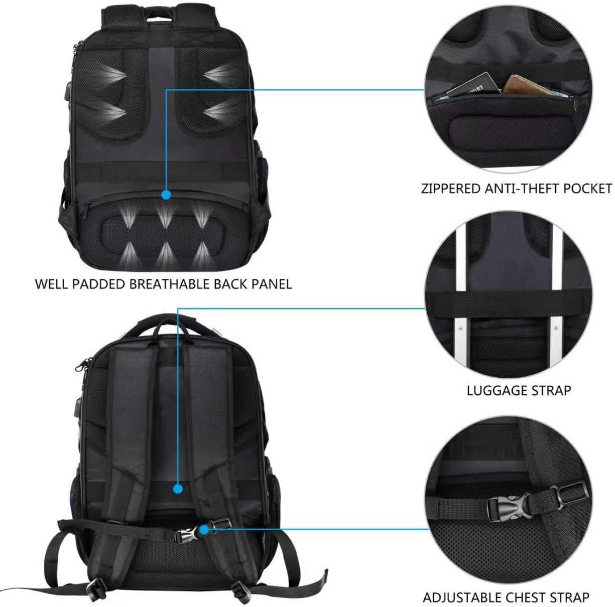 FUNCTIONAL & SAFETY】:A well-knitted “ luggage strap” is quite convenient for you to fix the backpack on the trolley of your luggage, making your journey and travelling more convenient wherever you go. Design of an air-flow back padding system and a secret pocket ensures great comfort and safety in your journey. RFID Pockets with Identity protection function protects date encoded on most IDs, credit cards and passport