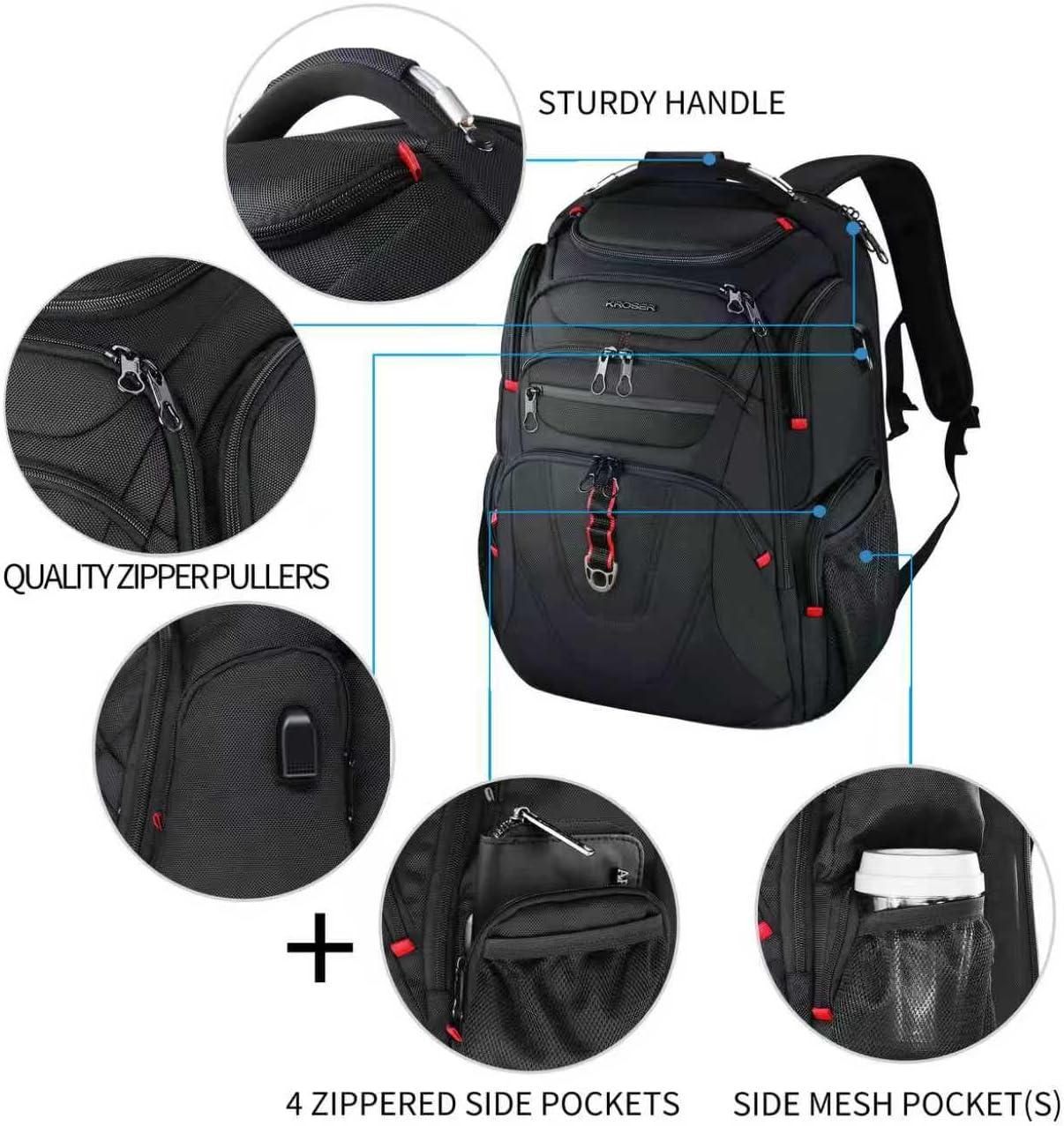 KROSER Friendly Travel Laptop Backpack 17.3 inch XXXL Gaming Backpack Water-Repellent College Daypack Business Backpack with RFID Pockets & USB Port for Men/Women-Black/Red(Black-17.3)