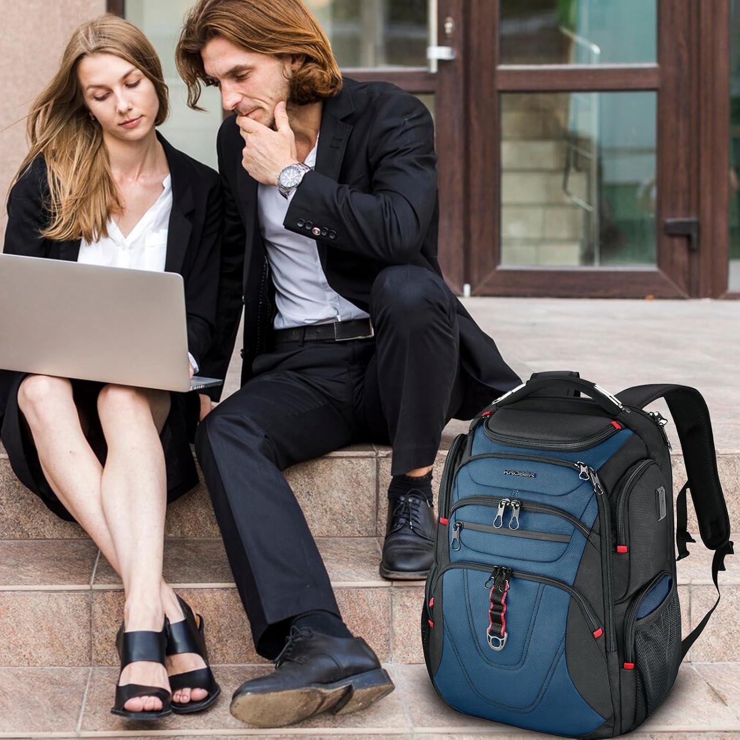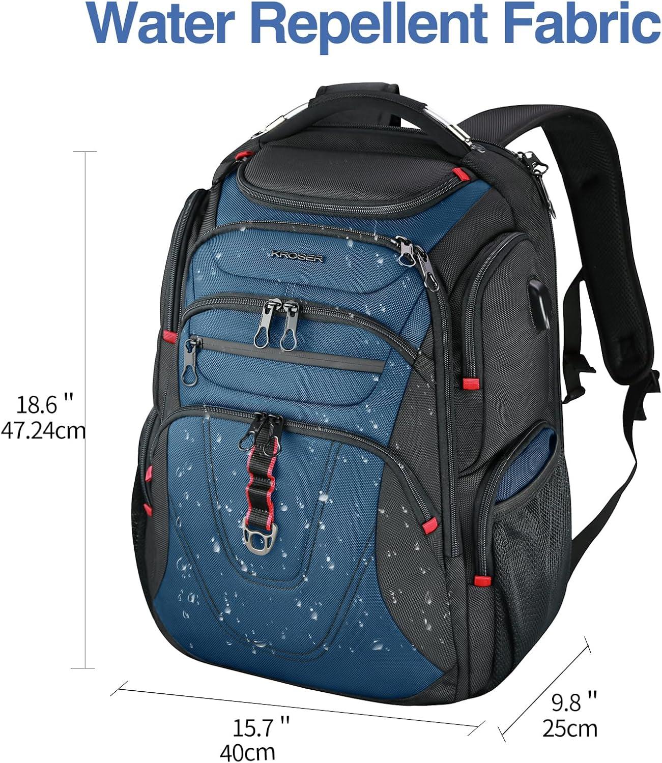 KROSER Friendly Travel Laptop Backpack 17.3 inch XXXL Gaming Backpack Water-Repellent College Daypack Business Backpack with RFID Pockets & USB Port for Men/Women-Black/Red(Black/Haze Blue-18.4)