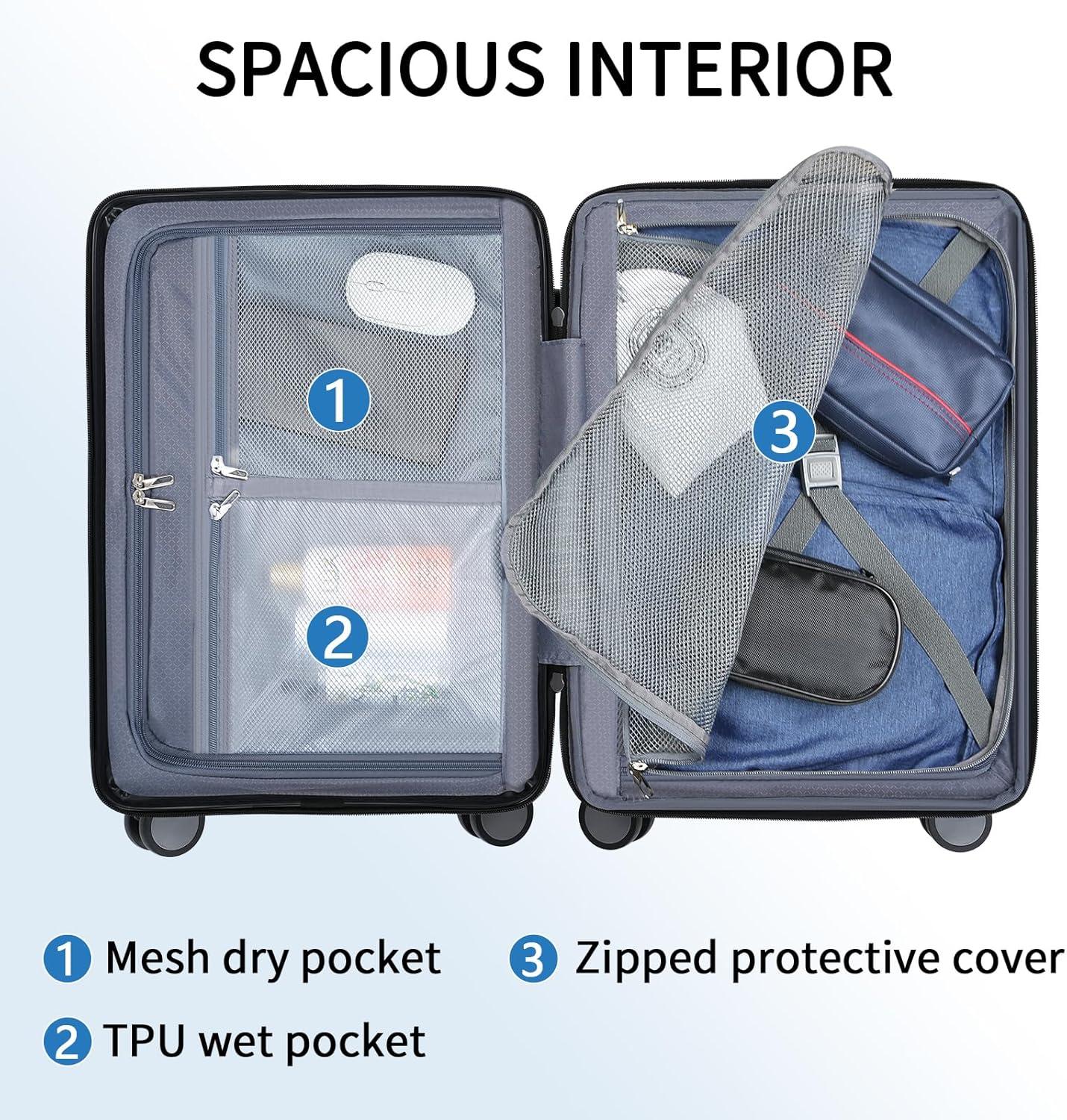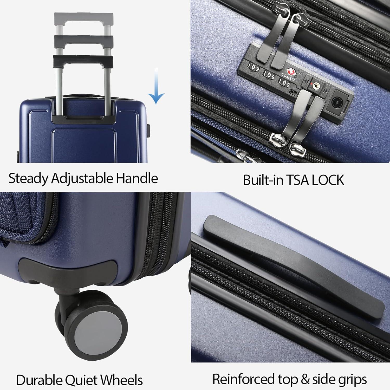 imageKROSER Hardside Expandable Carry On Luggage 22x14x9 Airline Approved With Front Business Pockets 20 Inch Suitcases with Wheels Carry on Suitcase with TSA Lock ampamp USB Port NavyBlackHaze Blue