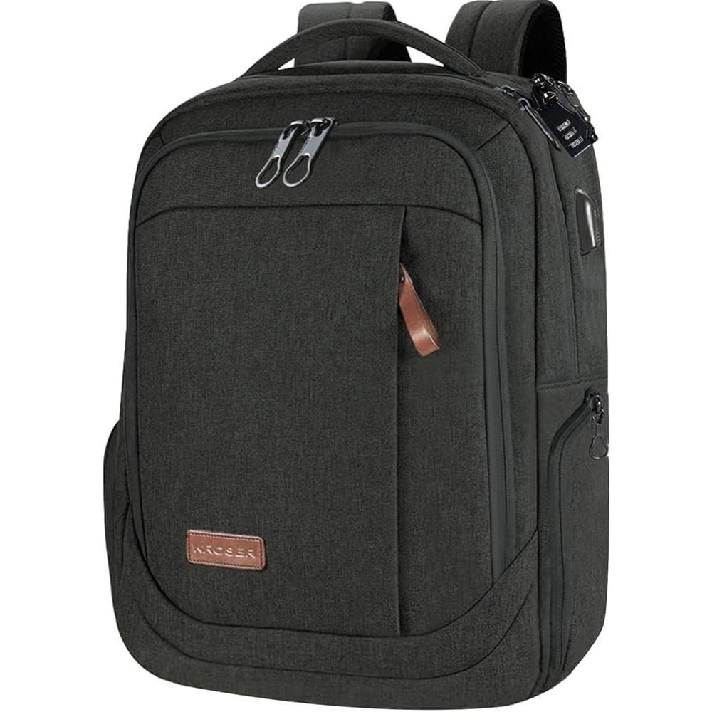 KROSER Laptop Backpack Large Computer Backpack Fits up to 17.3 Inch Laptop with USB Charging Port Water-Repellent Travel Backpack Casual Daypack for Business/College/Women/Men-Charcoal Black(A-charcoal Black-17.3")