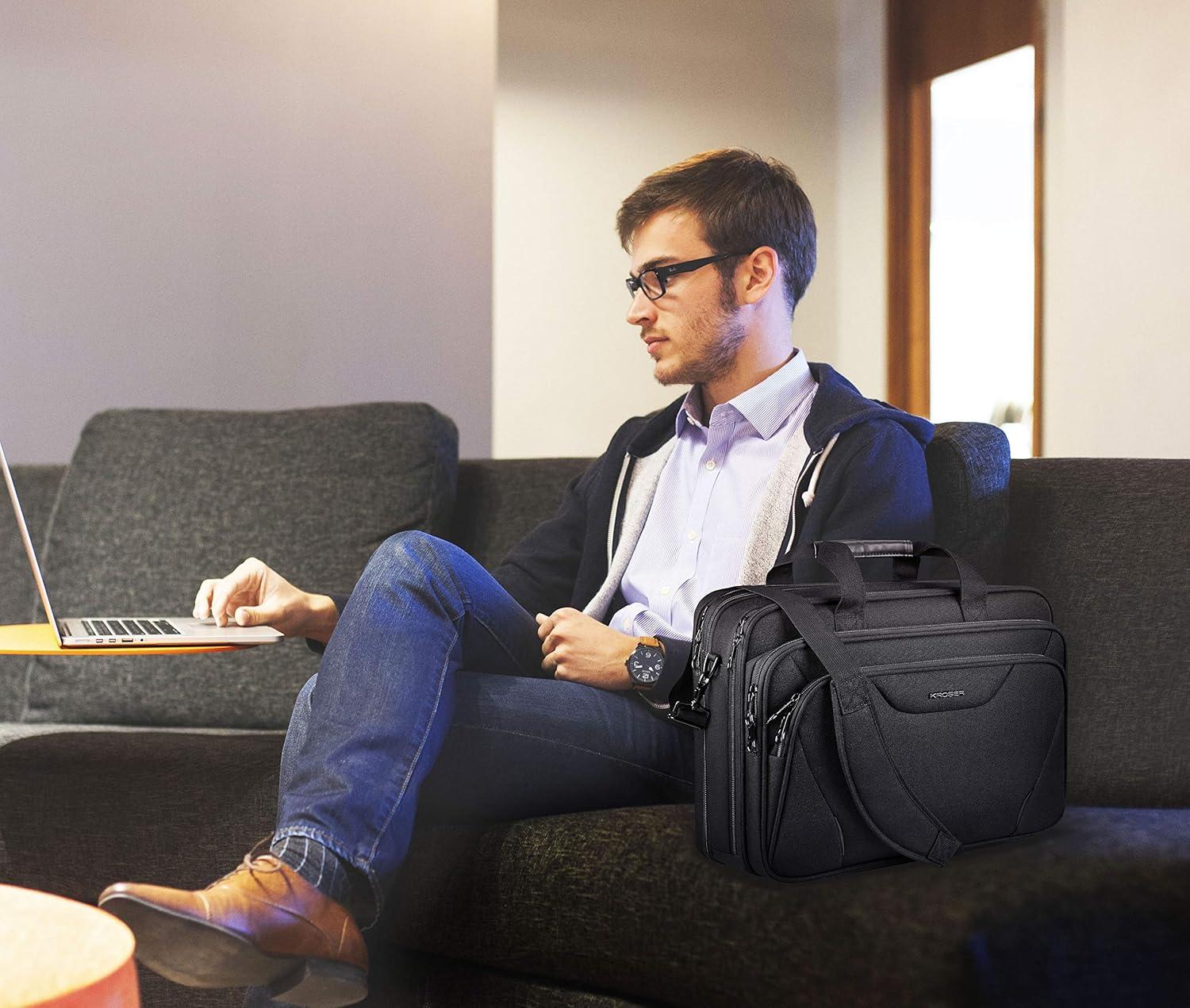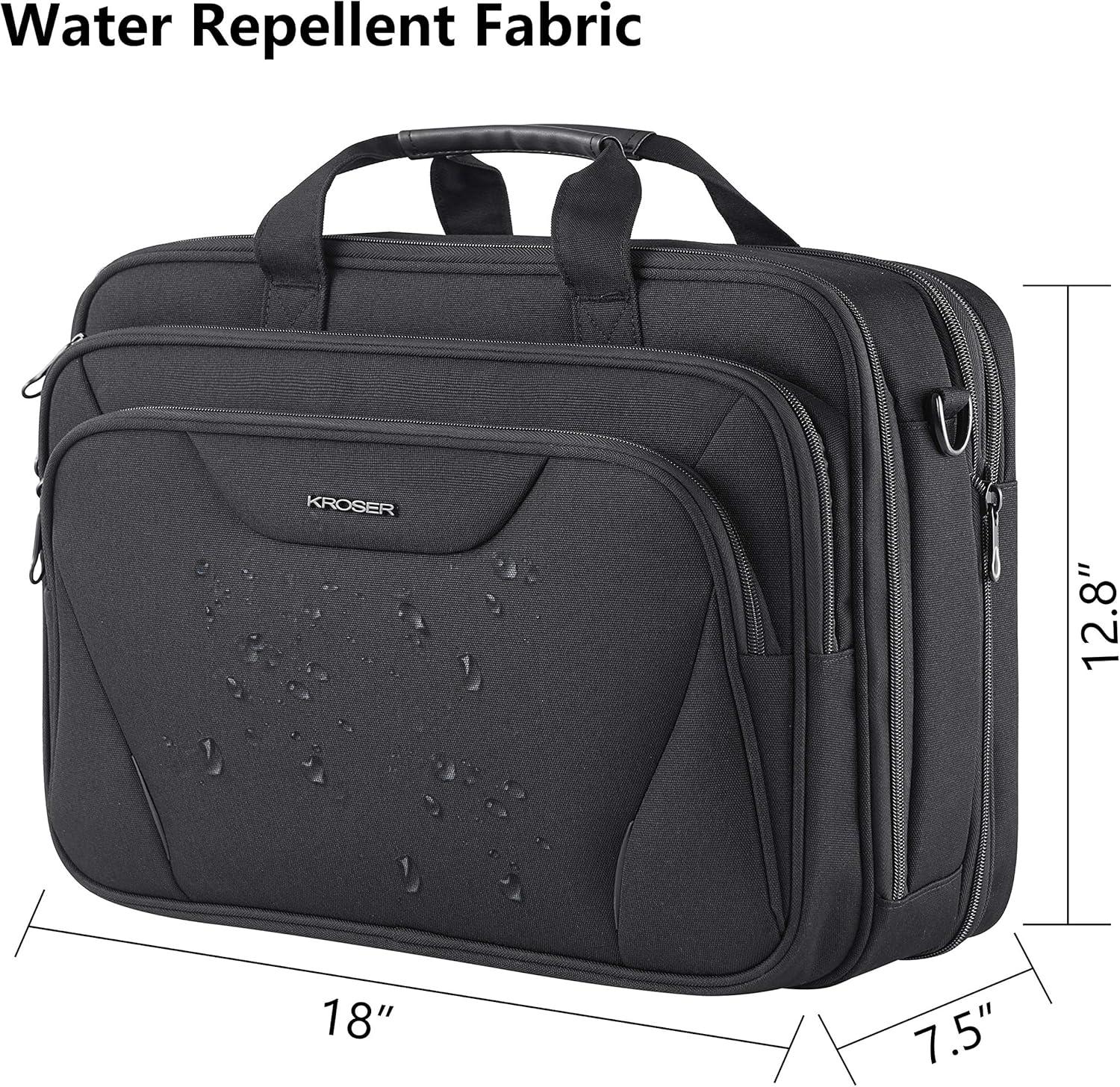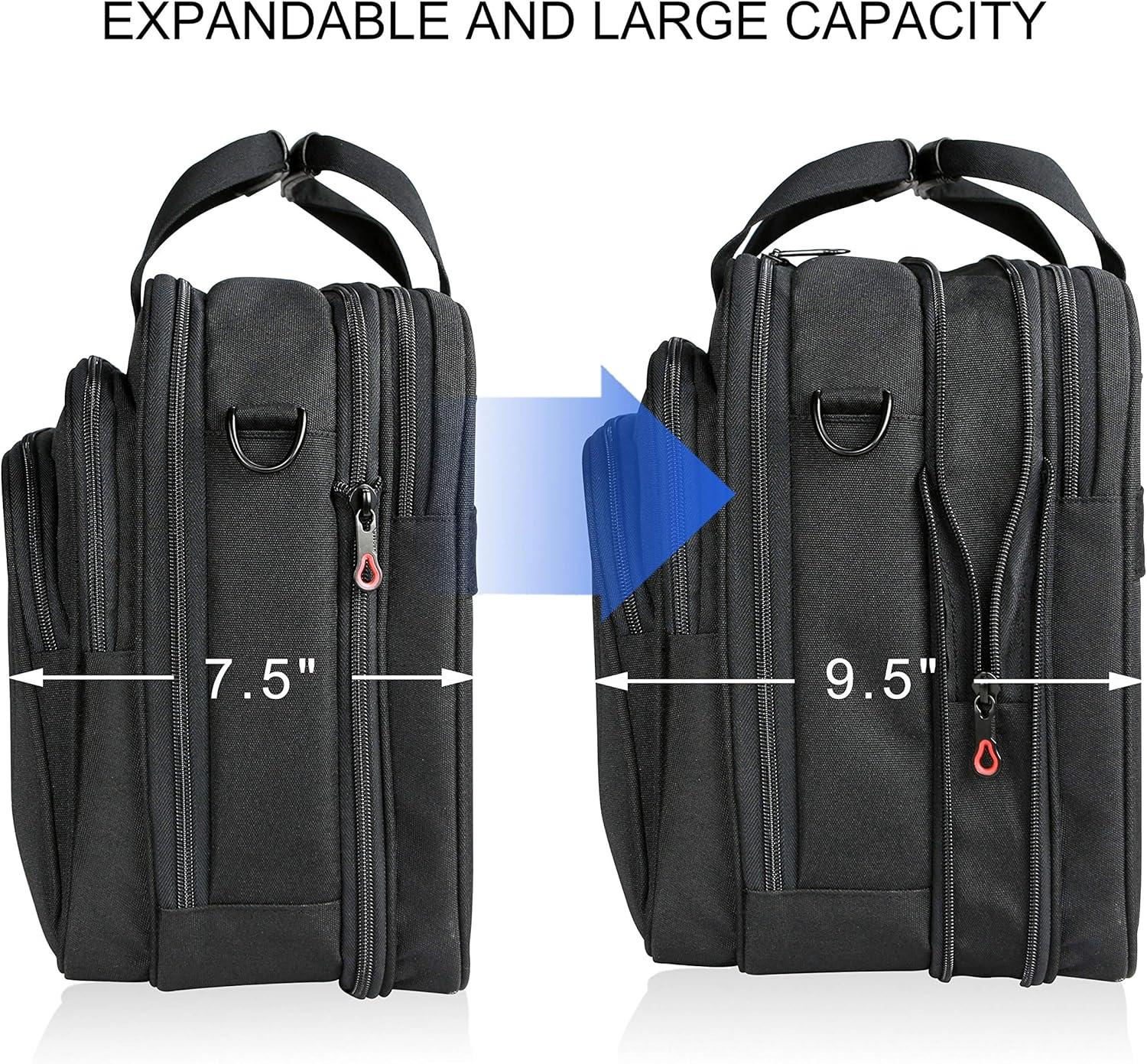 MATERIAL: The laptop briefcase is made of environment-friendly canvas poly fabric which is durable and water-repellent; Dimensions: 18”x12.8”x7.5”/9.5”; Weight:2.88LBS.