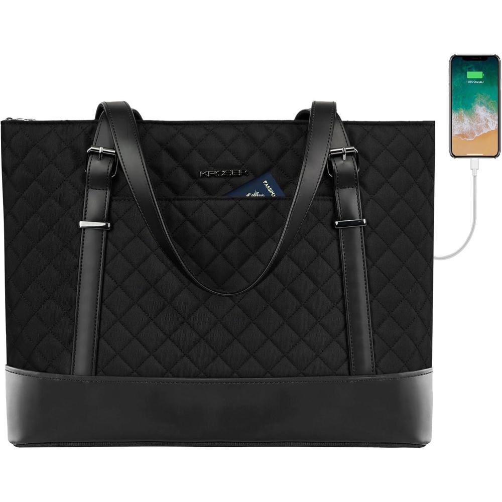 【Elegant Laptop Tote】:The work bags for women built-in USB PORT is convenient to charge your cell phone by connecting your power bank without up your bag and go. Please noted that the power bank is not included.