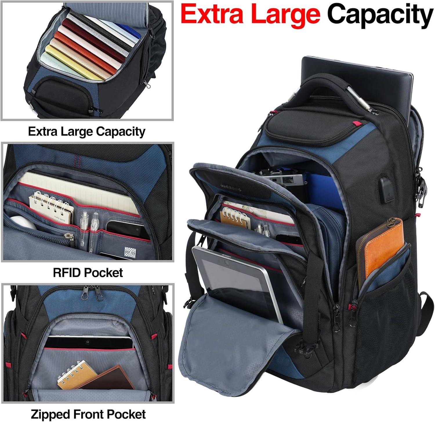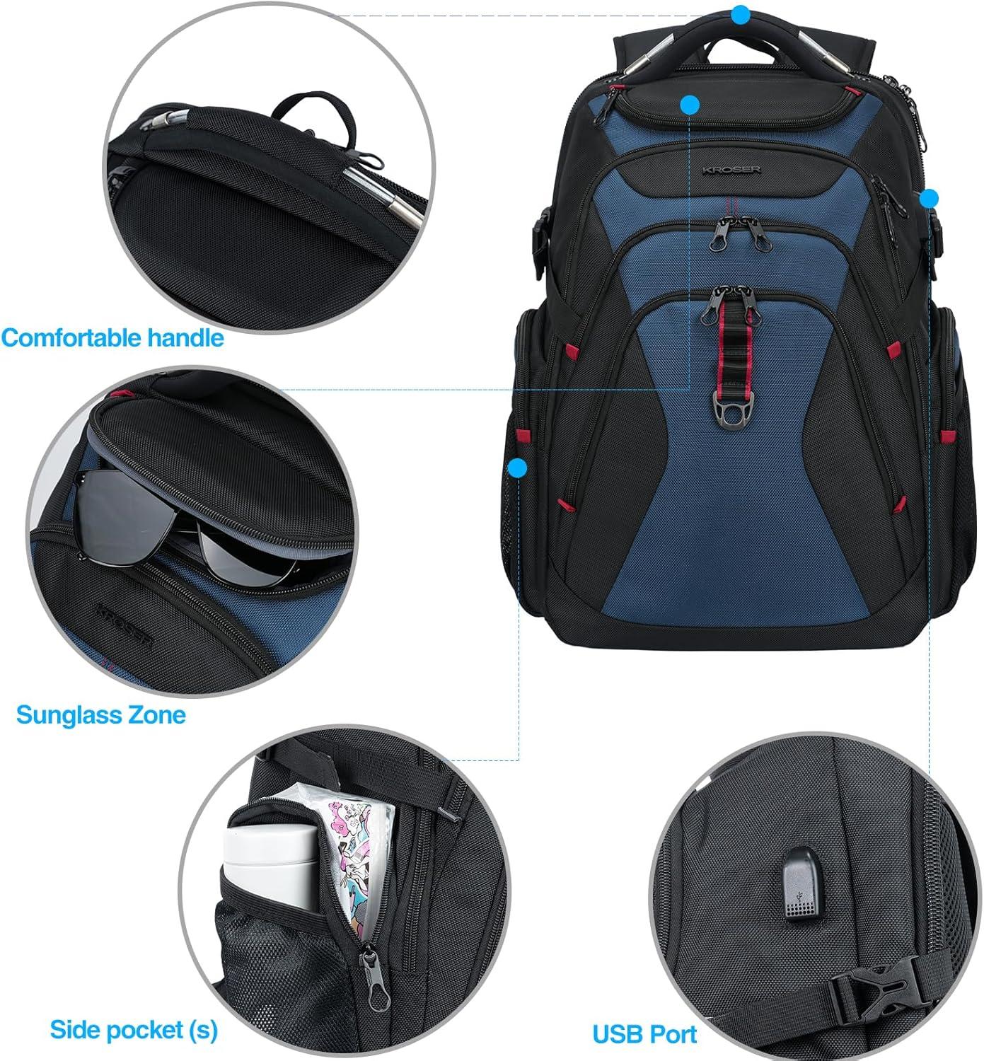 KROSER Travel Laptop Backpack 17.3 Inch XL Computer Backpack with Hard Shell Saferoom RFID Pockets Water-Repellent Business College Daypack Stylish Bag for Men/Women-Black(Black/Haze Blue-17.3)