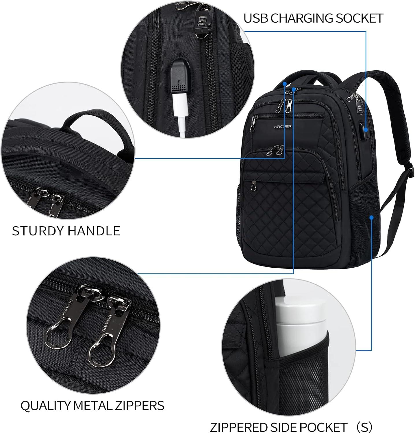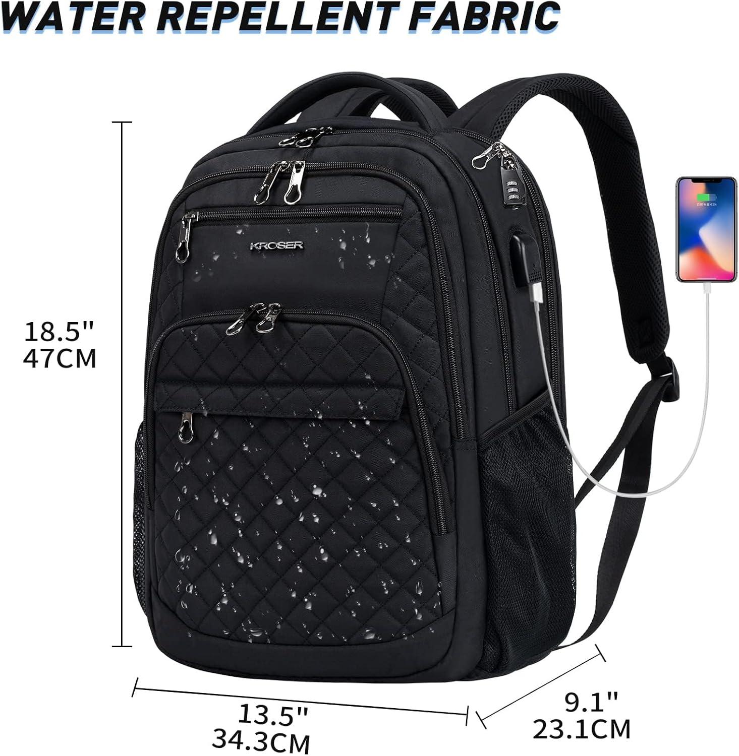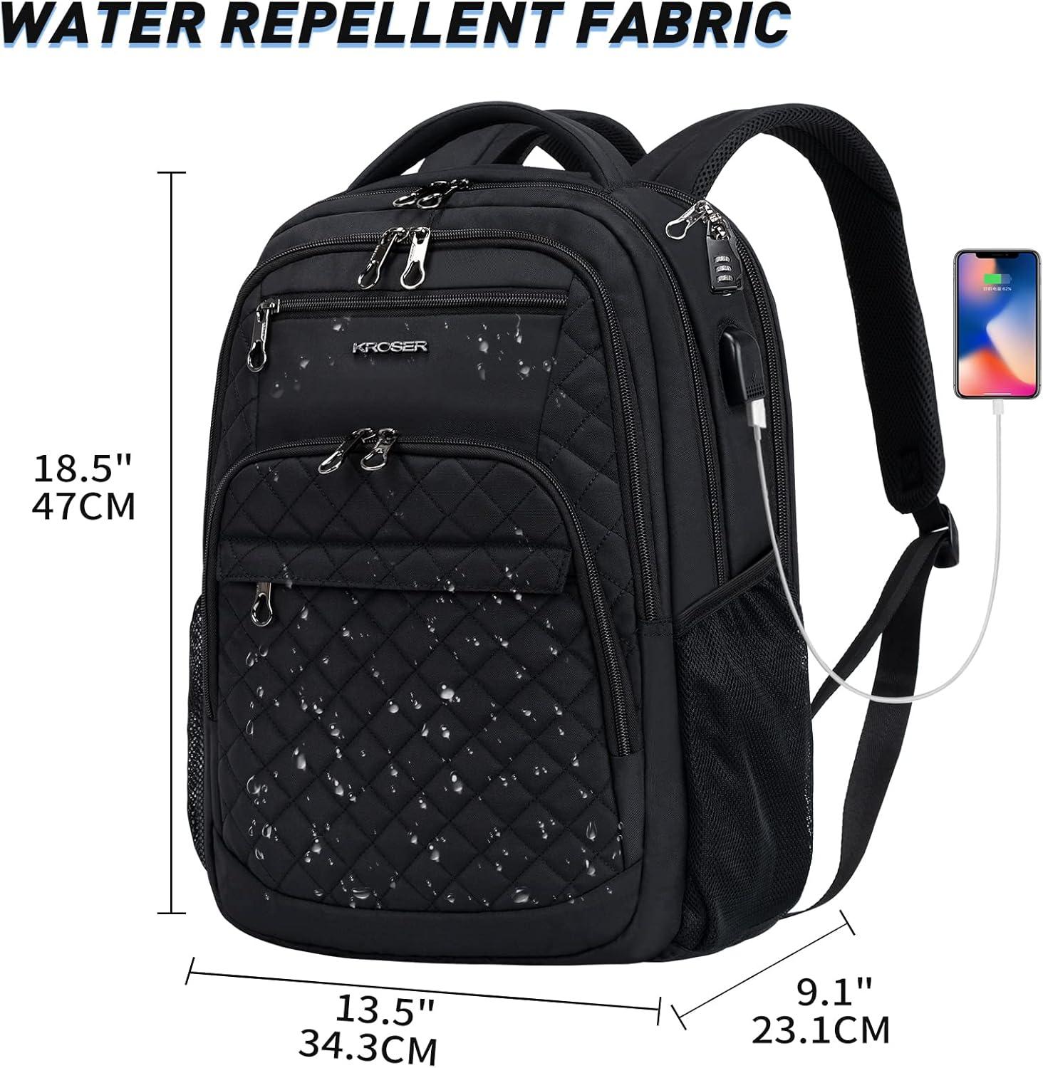 Be the first to review “KROSER Travel Laptop Backpack 17 Inch Large Computer Backpack Water-Repellent Daypack with USB Charging Port RFID Pockets for Work/Business/College/Men/Women(Quilted)(Quilted Black)”